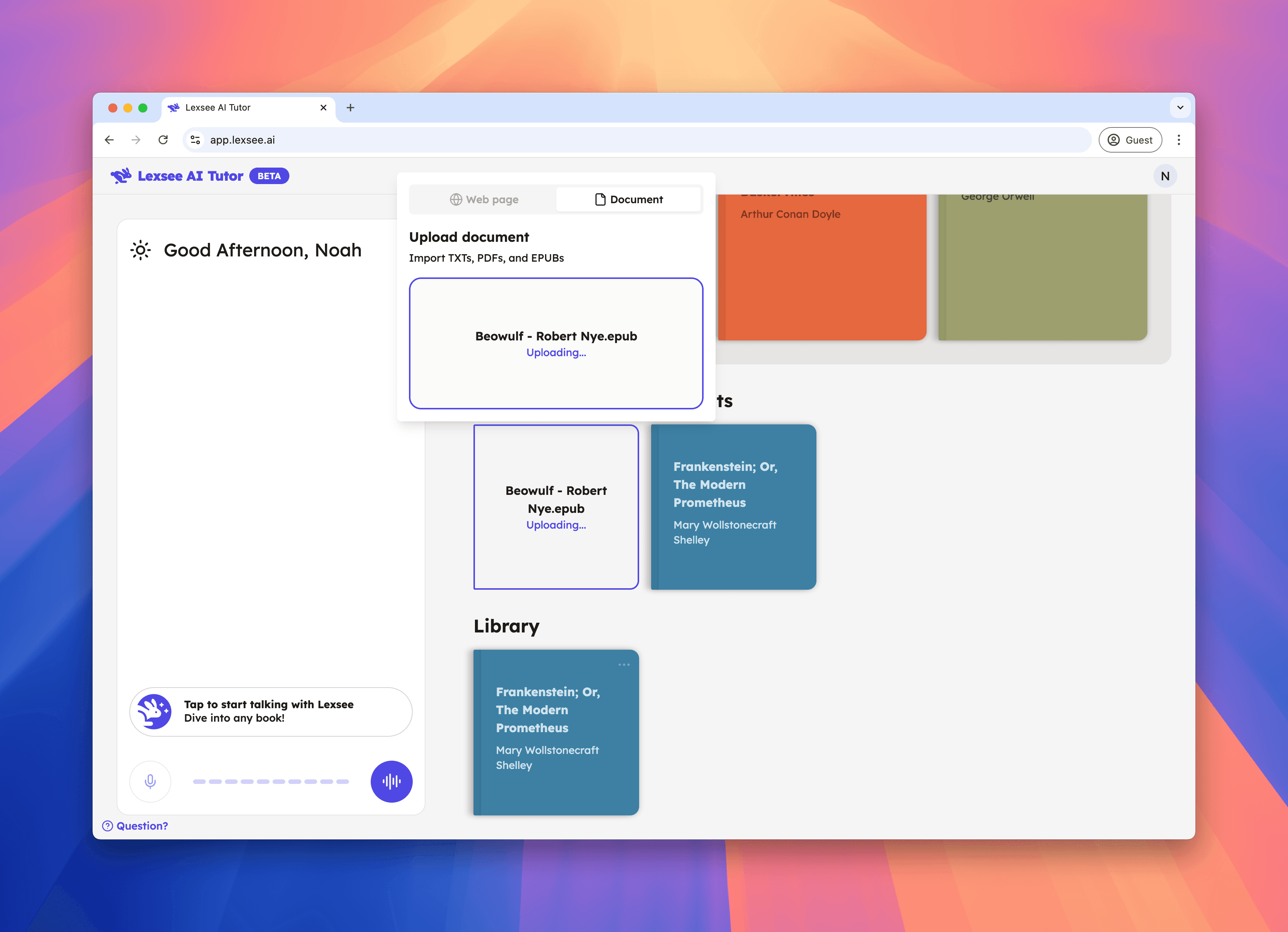 Note: Many digital books (ePubs) have Digital Rights Management protection. If you're unable to import your book file due to DRM or have another importing issue, please contact us at support@lexsee.ai so we can help you find an appropriate solution.