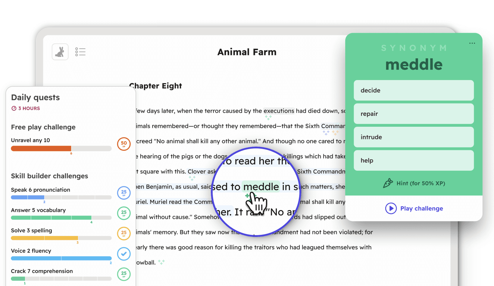 Adaptive learning engine personalizes fun and challenging skill builders.