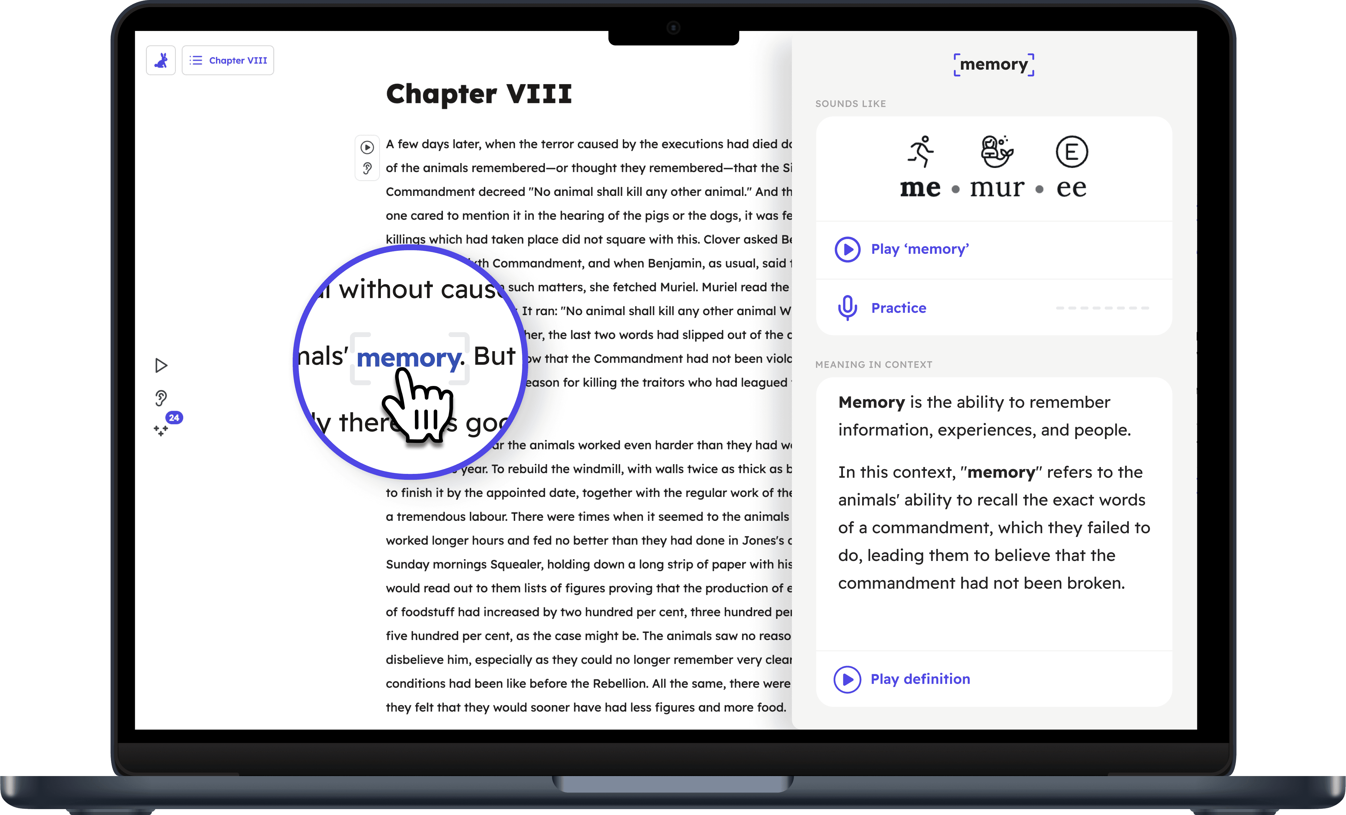 Lexsee keeps your curriculum intact and adds word-level supports that make each word readable and learnable—so every student can decode, understand, and keep up with classroom instruction.